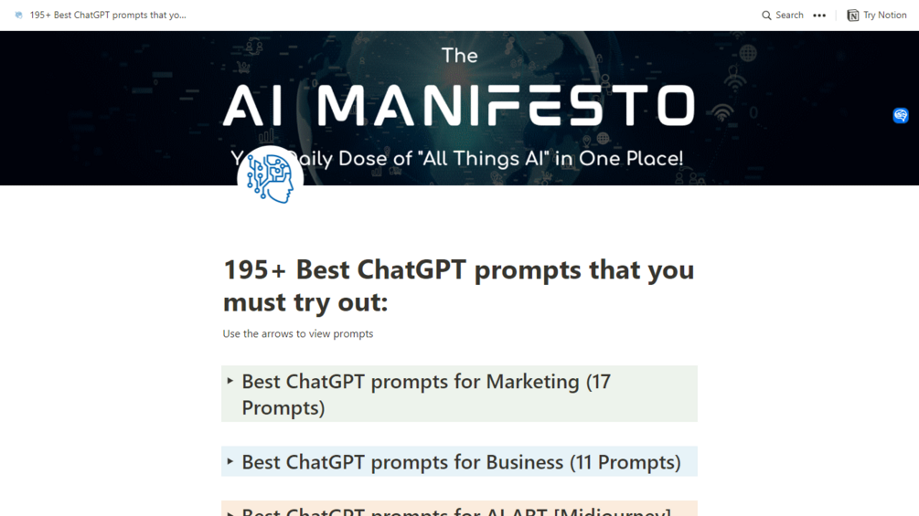 This is a collection of various ChatGPT prompts for different fields such as marketing, business, content creation, web development, education, and more. Here are some of the prompts from each field:
